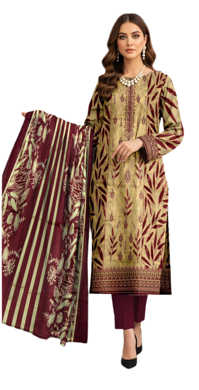 2-piece stitched suit in pistachio green with oversized floral print—straight kurta + straight trouser. Lightweight, breathable; ideal for everyday wear.