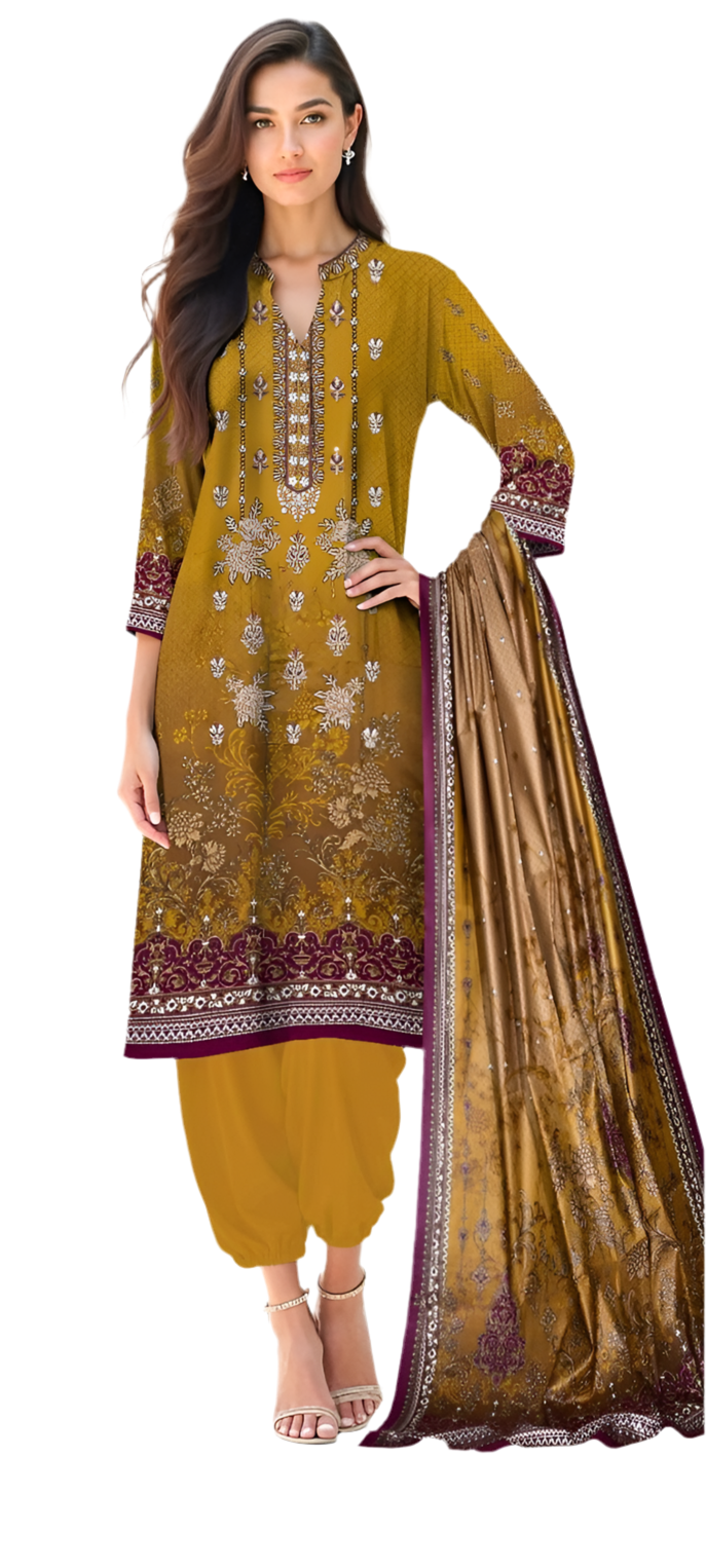 2-piece stitched suit in pistachio green with oversized floral print—straight kurta + straight trouser. Lightweight, breathable; ideal for everyday wear.